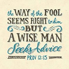 Proverbs 12:15 (NKJV) “The way of a fool is right in his own eyes, but he who heeds counsel is wise.”