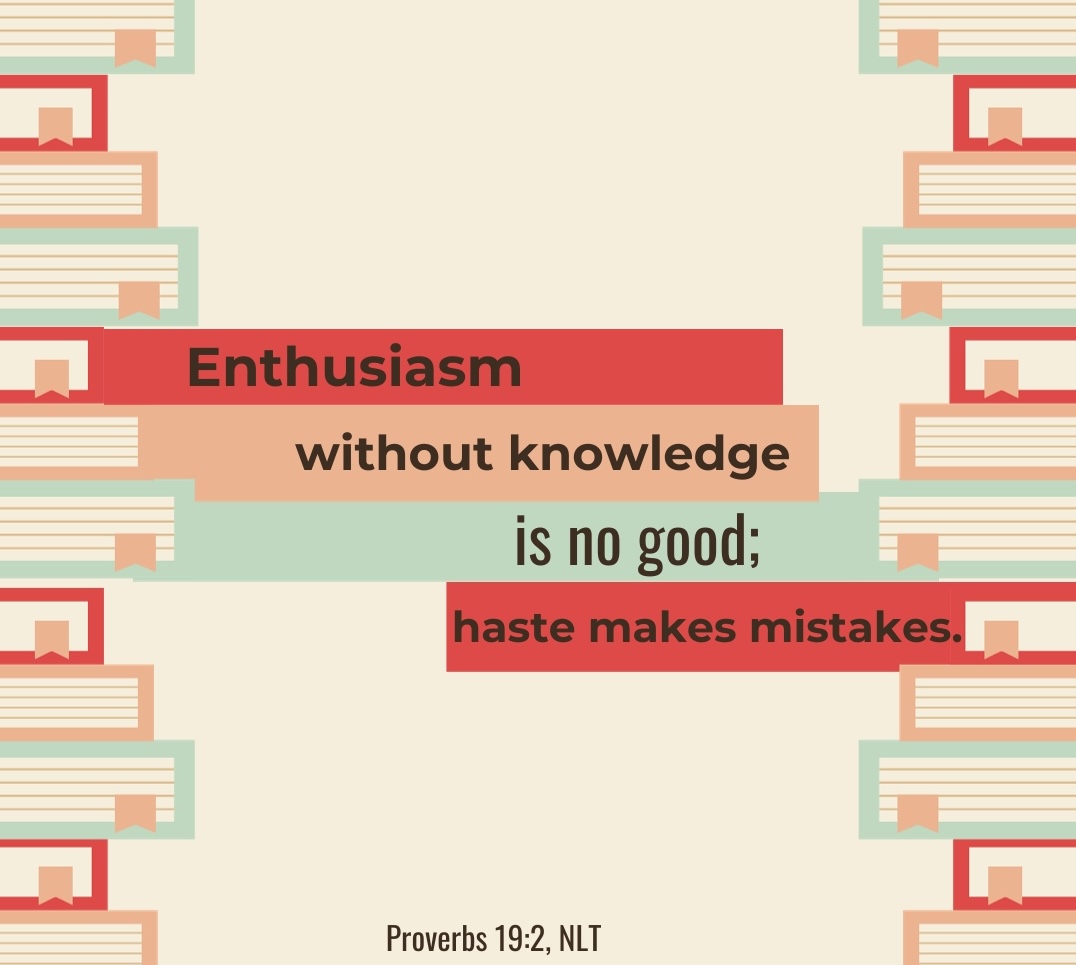 Proverbs 19:2 (NLT) Enthusiasm without knowledge is no good; haste makes mistakes.